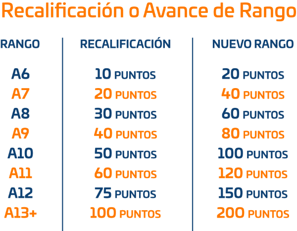 Recalificación o Avance de Rango Personal a partir del rango A6 (200 puntos posibles).