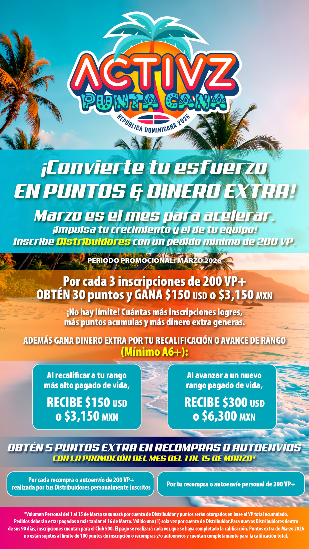 • Debes cumplir con los requisitos de Volumen Personal basados en el Plan de Compensación.